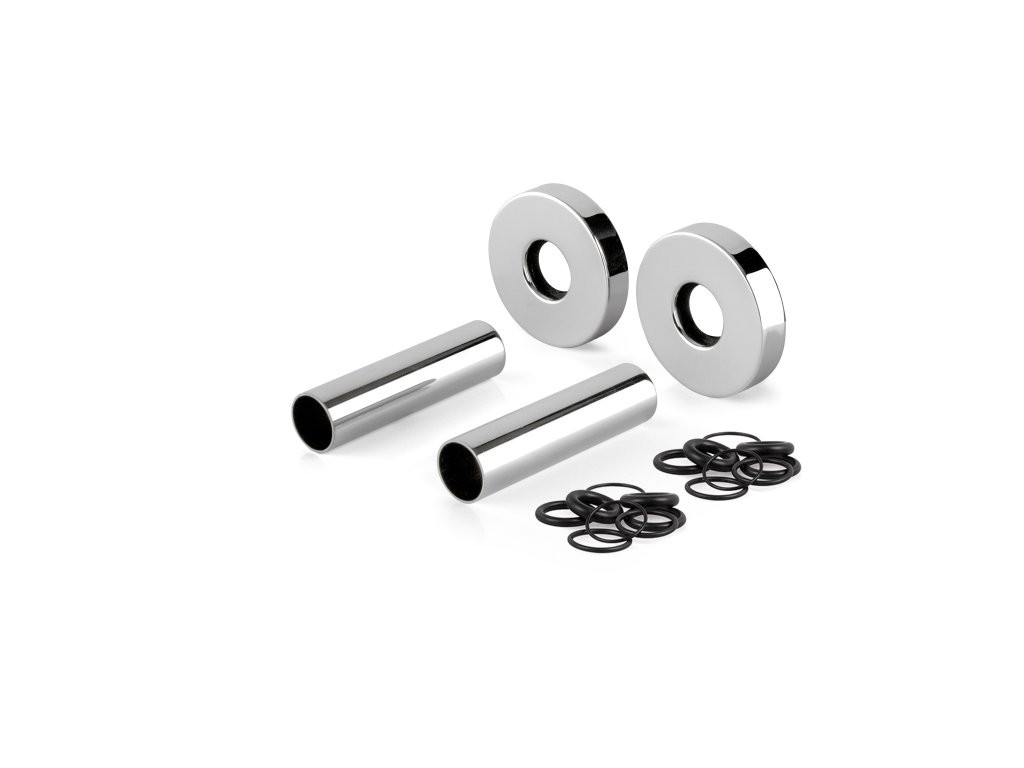 Mosazná sada 2 krytek a trubiček na potrubí 12-16 mm. Růžice 50 mm. Délka trubiček 70 mm, 160 mm. Barva chrom. Provozní teplota 0 °C +100 °C. Provozní tlak PN 10. Mosaz CW617N. Těsnění o-kroužek EPDM. Pro rozvody vody a topení. Vyrobeno v souladu s UNI EN ISO 9001:2015 v Itálii.