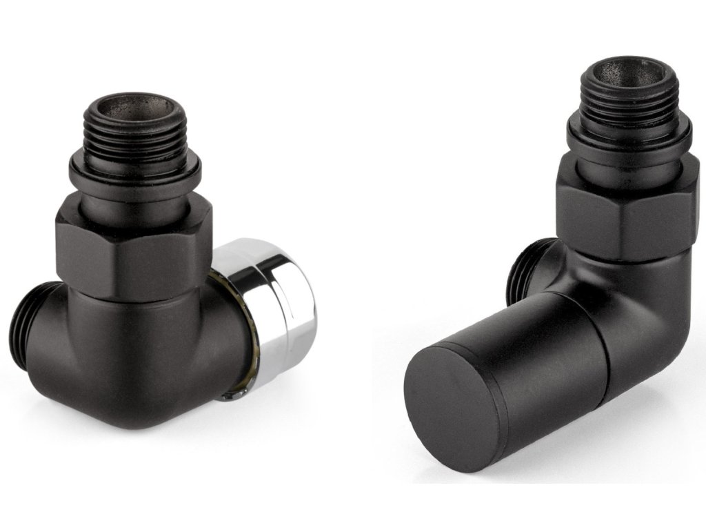 APM 130NN set termostatický ventil a regulační šroubení 1/2"x1/2" rohový úhlový levý černý