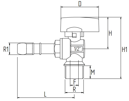 Nasaďte vidlicový klíč na šestihranný (nebo osmihranný) konec ventilu na straně potrubí (pod páčkou, při poloze otevřeno) a našroubujte ventil na přívodní potrubí. Nepoužívejte klíč na opačný konec ventilu, abyste jej našroubovali na potrubí (ne závitový spoj, je vidět na řezu níže). Podobný postup použijte při demontáži ventilu. Použití jiných než výše uvedených metod může způsobit poškození nebo netěsnost ventilu. Na utěsnění závitů použijte těsnící materiál podle doporučených plynárenských předpisů (těsnící pasta +instalatérský len).