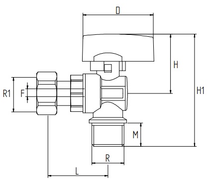 APM 3450 kulový kohout na plyn MOP 5 s převlečnou maticí rohový