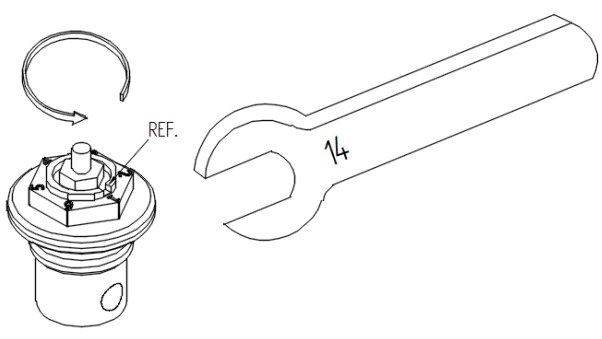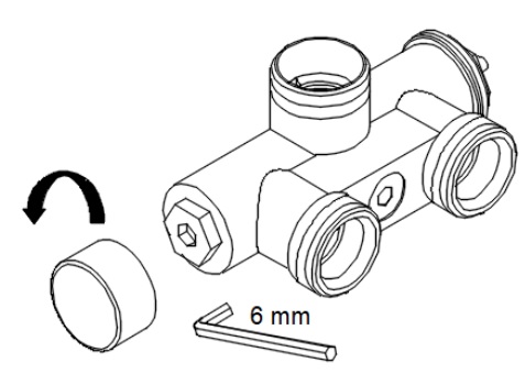 Kompletně uzavřete ventil, potom pomocí imbusového klíče a počtu otáček nastavte průtok ventilu.
