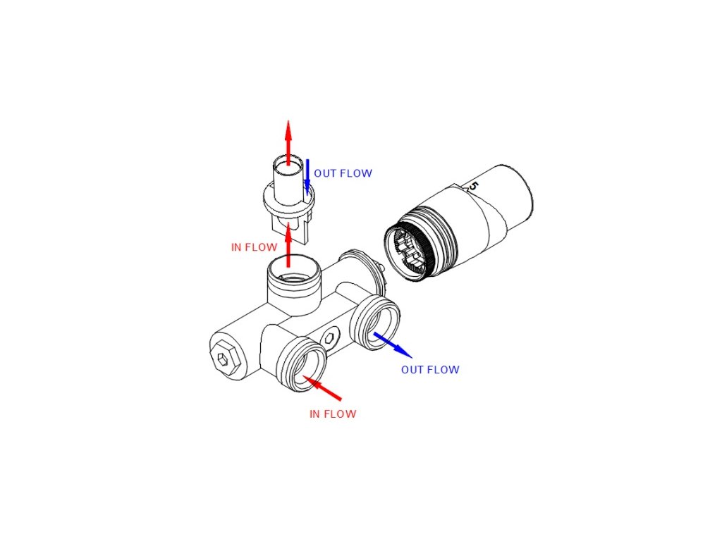 Přednastavení průtoku sedla ventilu na straně hlavice: