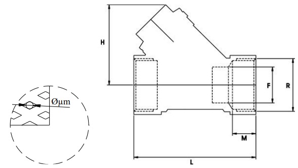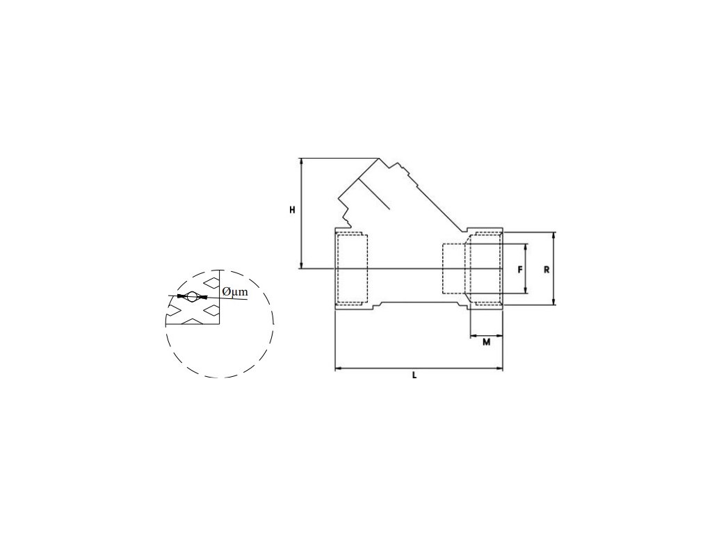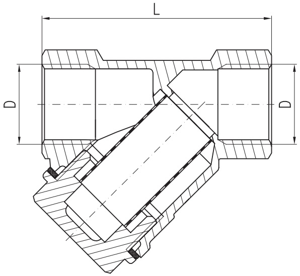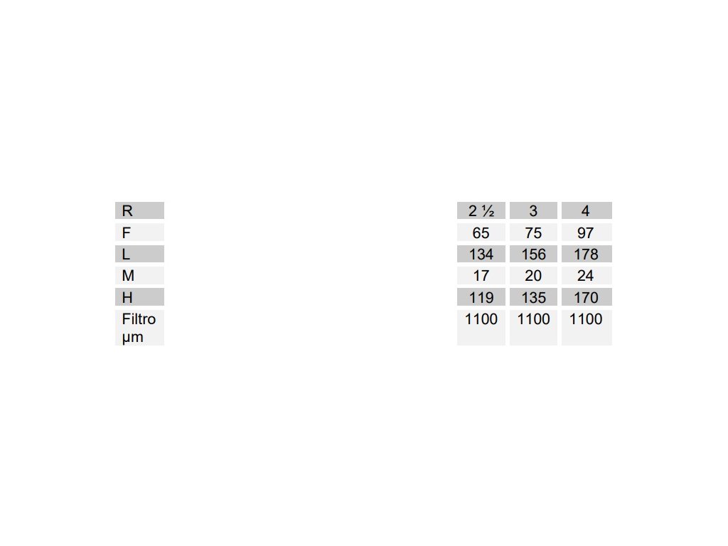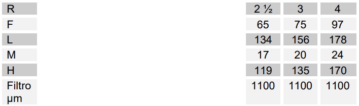 Y-filtr (šikmý filtr) s nerezovým sítem. Vnitřní (F) závit. Stupeň filtrace 1100 mikronů. Připojení 2 1/2", 3", 4", 6/4". Provozní teplota 0 °C + 120 °C. Provozní tlak PN 25. Mosaz CW617N. Těsnění PTFE (teflon). Pro rozvody vody a topení, solární systémy (50 % roztok glykolu ve vodě) a klimatizační systémy. Vyrobeno v souladu s UNI EN ISO 9001:2015 v Itálii.