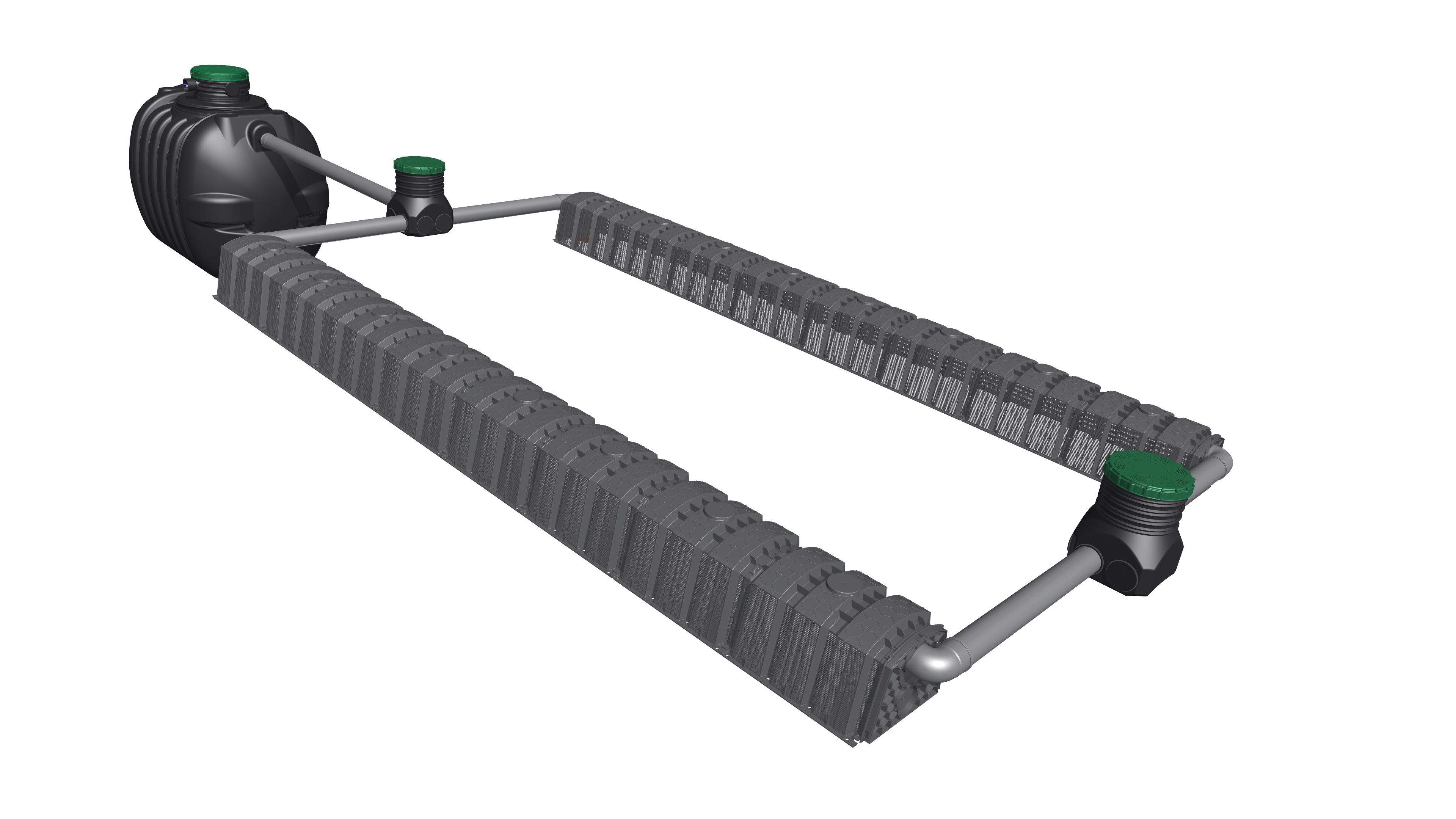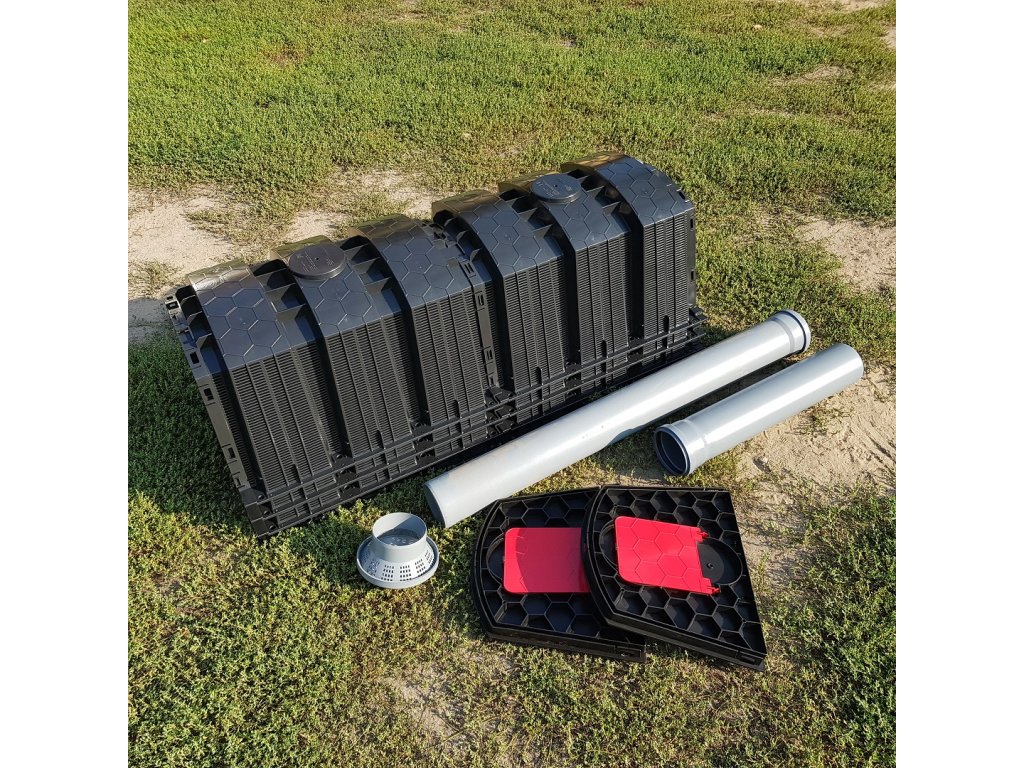 Kapacita jednoho vsakovacího tunelu je 150 litrů (0,15 m3)