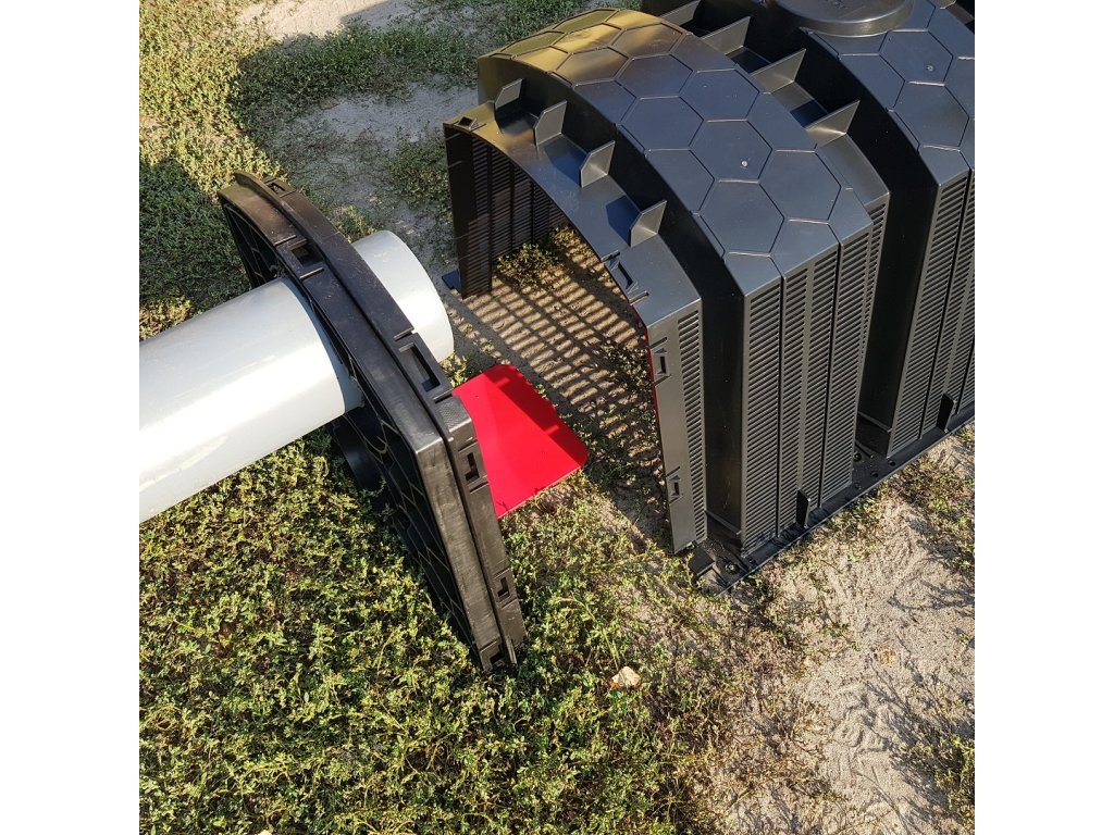 Na začátku tunelové řady je namontována koncová deska vybavená deflektorem. Deflektor absorbuje hydraulický ráz dopravované odpadní nebo dešťové vody. Díky jeho použití nedochází k vyplavování zeminy v místě přítoku odpadní nebo dešťové vody. Koncovou desku instalujeme také na konec tunelové linky. Instalace by měla být vybavena větracím přívodem vzduchu. To stejné lze aplikovat pomocí jednoho ze dvou připojení umístěných na horní stěně každého tunelu nebo pomocí horního připojení v uzavírací koncové desce. Spoje v horní části tunelu lze také použít jako inspekční otvory.