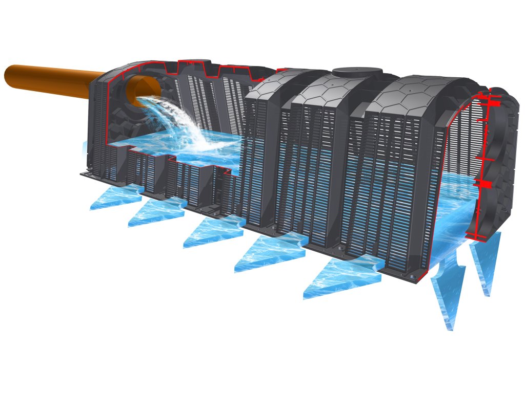 Vsakovací tunely 150 jsou určeny pro infiltraci odpadní vody z průmyslových procesů a domácností do země. Konstrukce tunelů umožňuje jejich využití i pro skladování a vsakování dešťové vody. Tunely jsou uloženy v zemi a vytvářejí tak gravitační infiltrační nánosy. Na bočních stěnách má tunel podélné štěrbiny, kterými mohou být splaškové i dešťové vody vsakovány do země.