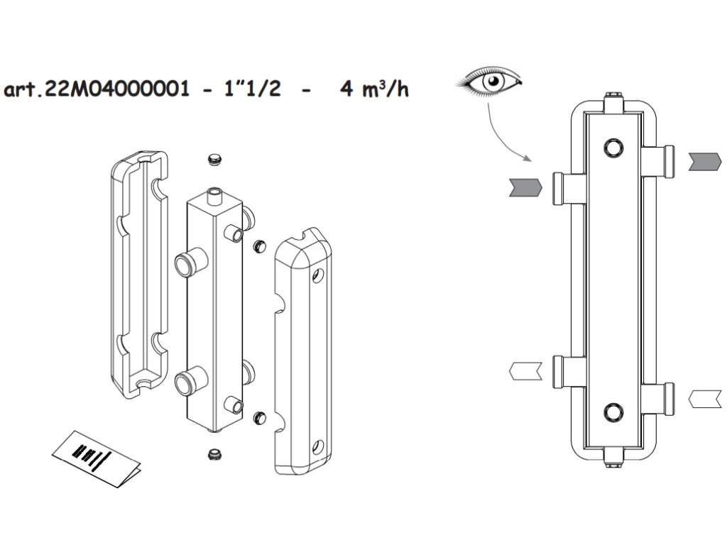BARBERI 22M.01 hydraulický separátor 6/4"x6/4"x1/2" s izolací a vnitřní síťkou