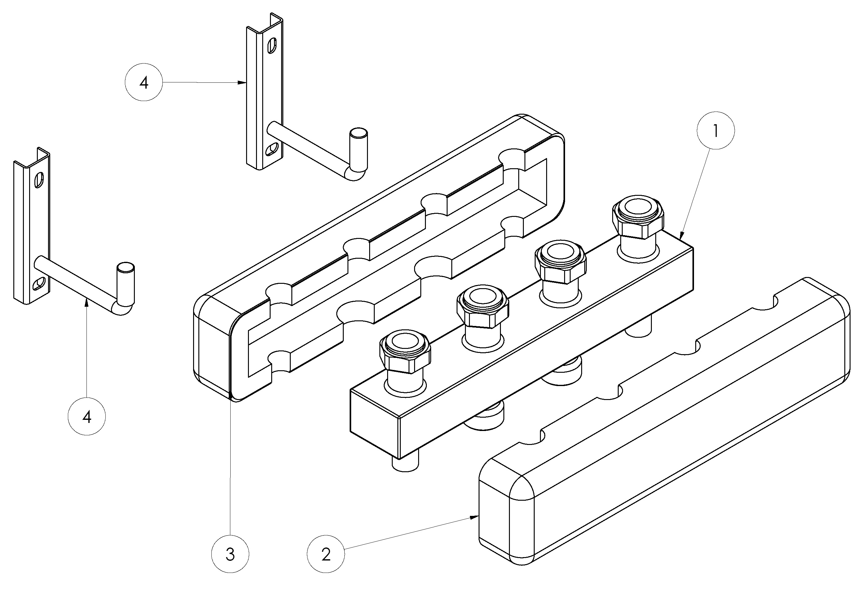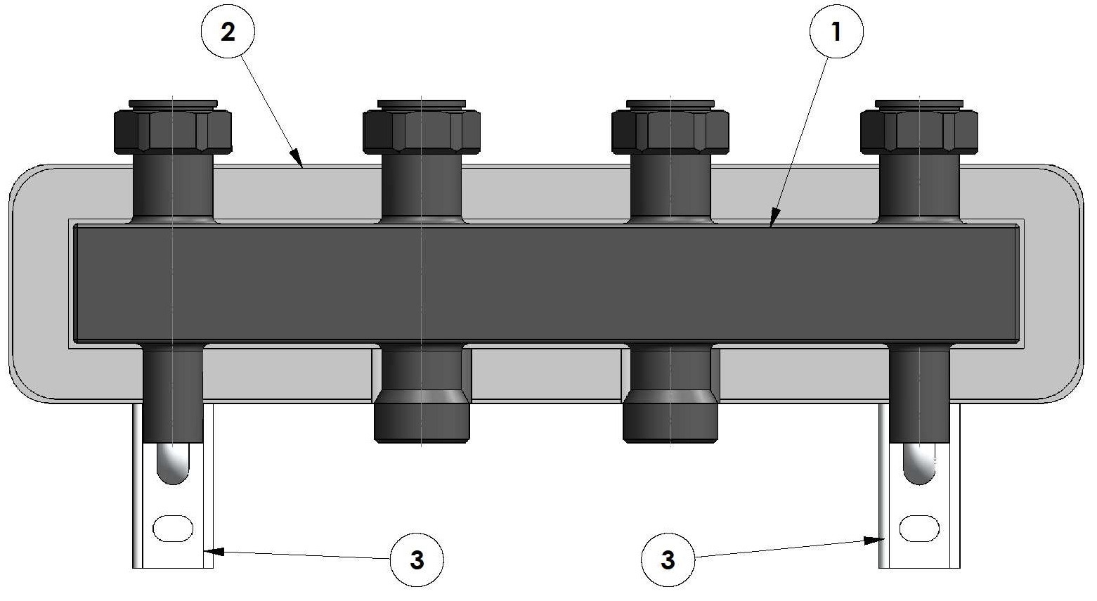 BARBERI P72 duální rozdělovač 6/4" s izolací pro připojení na čerpadlovou skupinu + nástěnné držáky