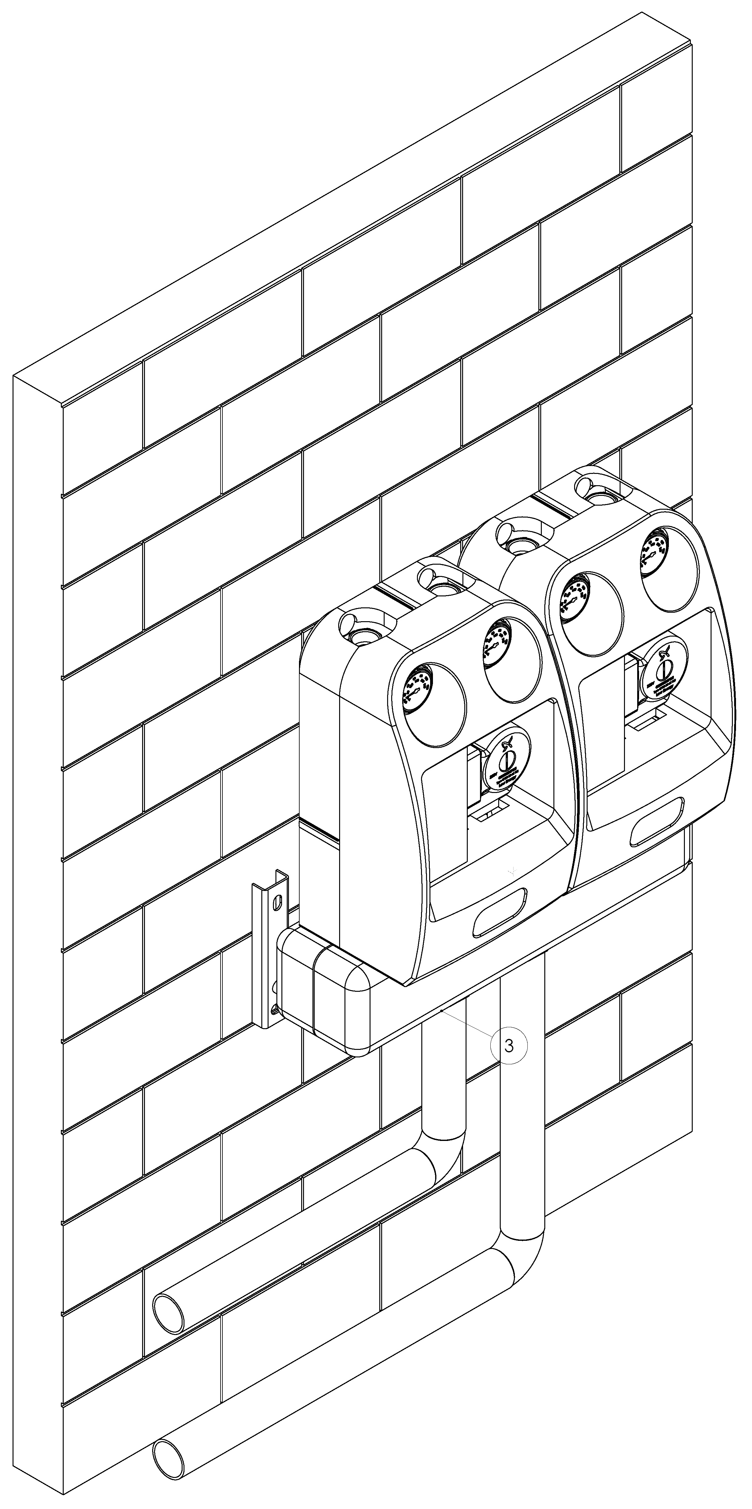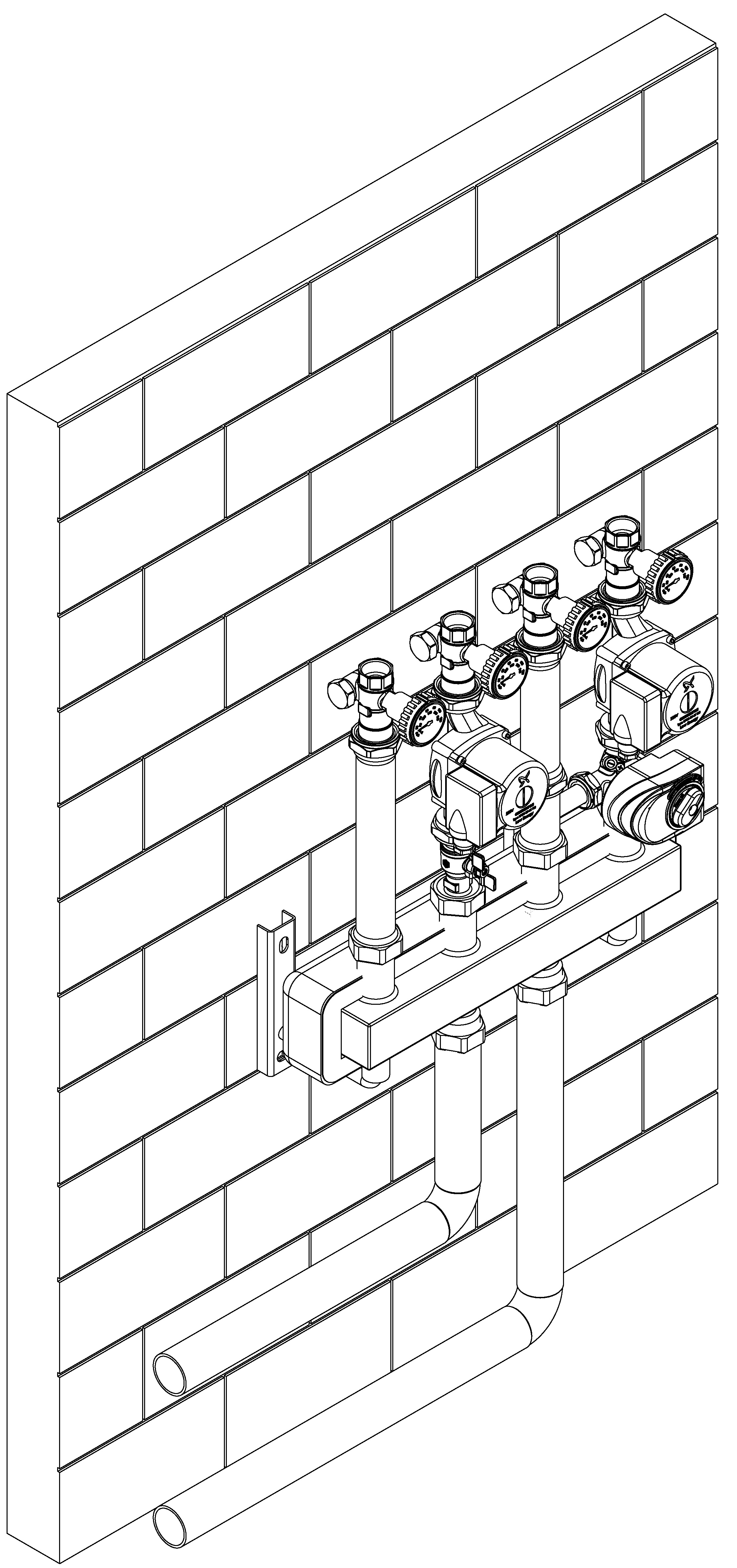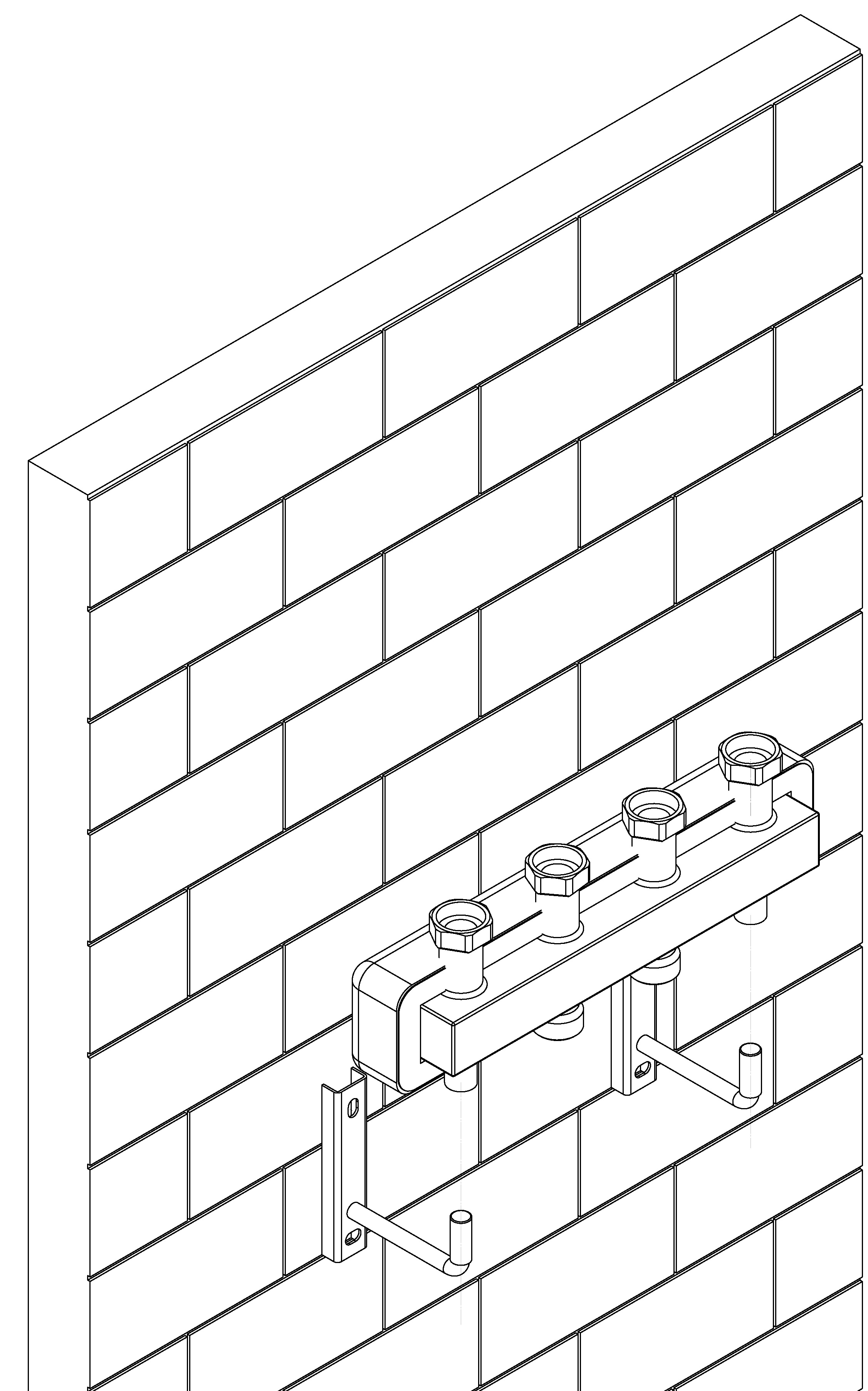 5 Namontujte rozdělovač na stěnu včetně zadního krytu. Rozdělovač je možné namontovat bez krytu (pokud by bylo možné instalovat tento poslední díl po instalaci potrubí)