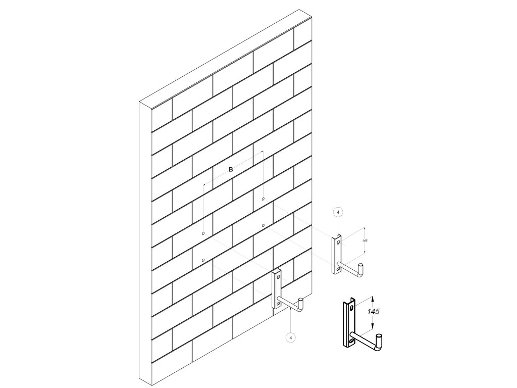 4 Přeneste vzdálenosti na zeď a vyvrtejte do zdi otvory. Držáky připevněte do stěny pomocí hmoždinek a šroubů