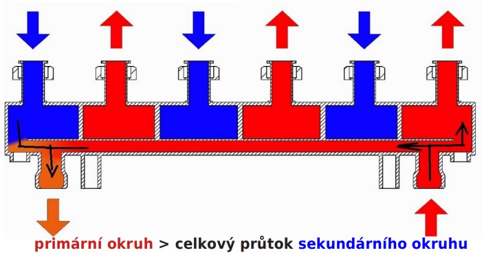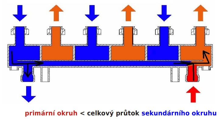 - Hydraulický separátor, také známý jako hydraulický kompenzátor, umožňuje čerpadlům hlavního a sekundárního okruhu pracovat nezávisle na sobě a respektovat průtoky systému
