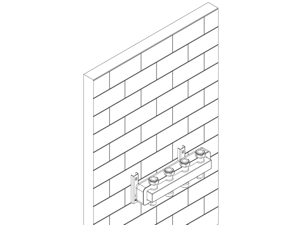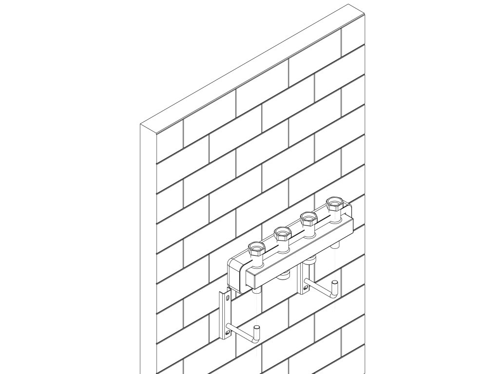 5 Namontujte rozdělovač na stěnu včetně zadního krytu. Rozdělovač je možné namontovat bez krytu (pokud by bylo možné instalovat tento poslední díl po instalaci potrubí)