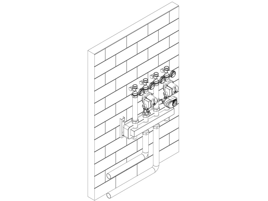 6 Nainstalujte potrubí hlavního a sekundárního okruhu a následně kryty rozdělovače a kryty čerpadlových skupin