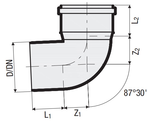 BLACKFIRE HTB koleno 87°30’ odpadní odhlučněné ohnivzdorné