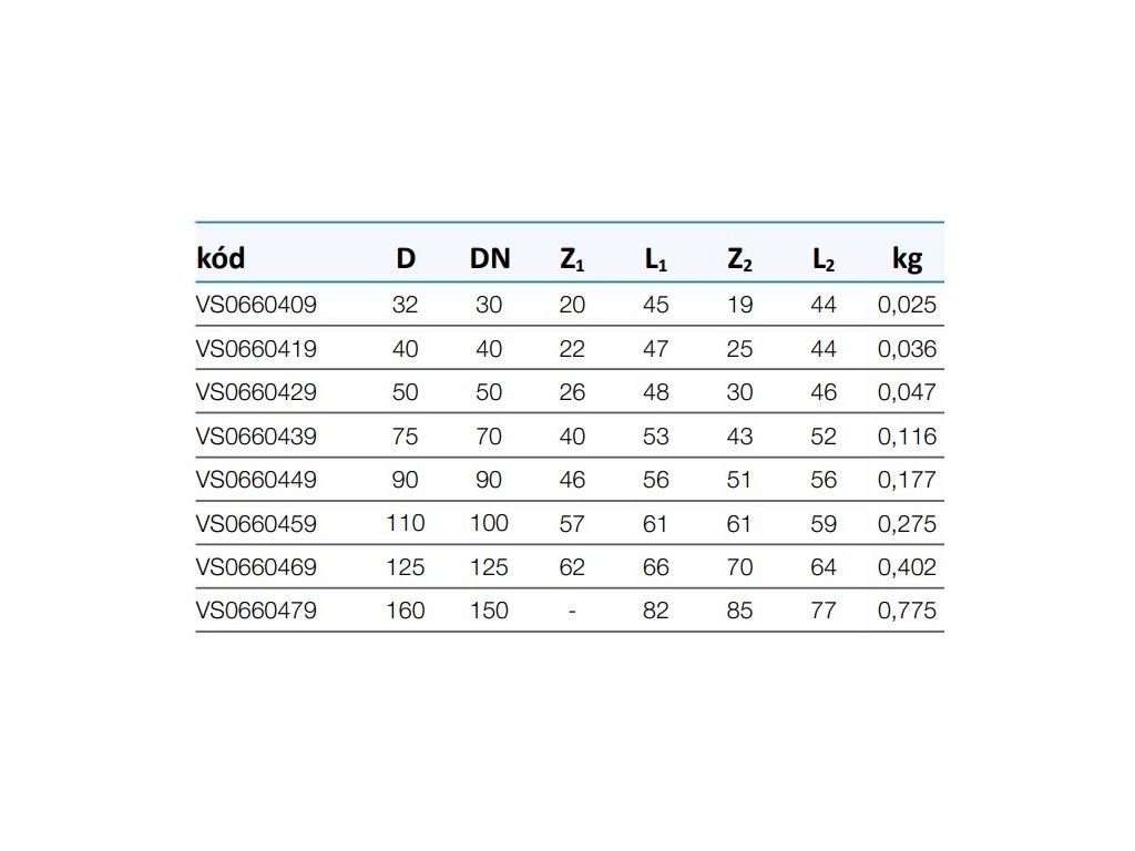 - připojení DN 32, DN 40, DN 50, DN 75, DN 90, DN 110, DN 125, DN 160