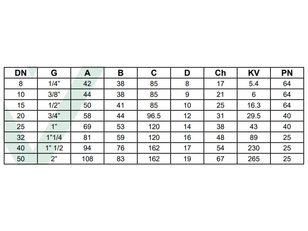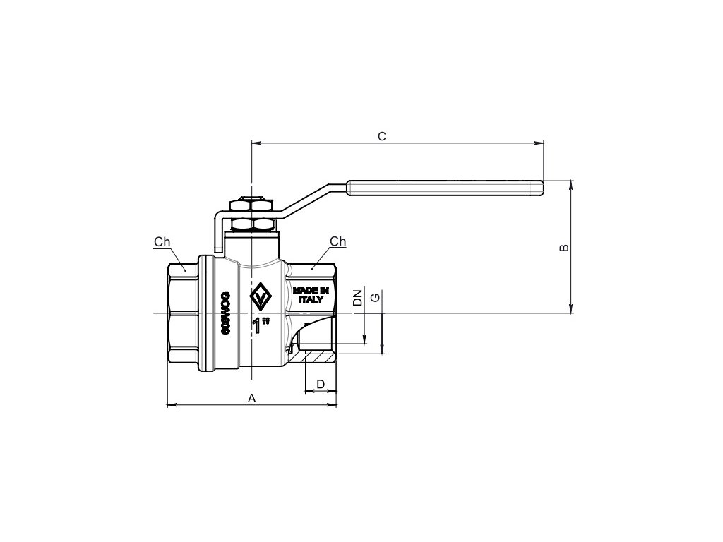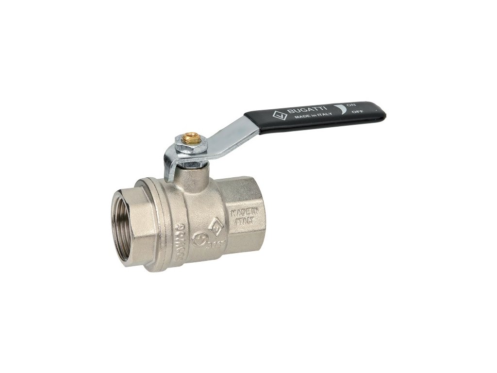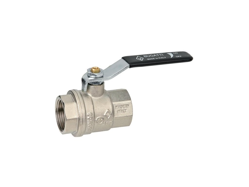 Plnoprůtočný kulový ventil s dvojitou ucpávkou a ocelovou pákou. Vnitřní (F) závit. Připojení 1/2", 3/4", 1", 5/4", 6/4", 2". Provozní teplota 0 °C + 185 °C. Provozní tlak PN 64 pro 1/2" , PN 40 pro 3/4"-1", PN 25 pro 5/4", 6/4", 2". Materiál mosaz CW617N. Těsnění PTFE (teflon), Viton. Pro rozvody vody a topení. Vyrobeno v souladu s UNI EN ISO 9001:2015 v Itálii.