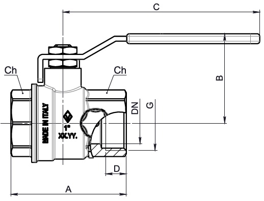 Plnoprůtočný kulový ventil s odvodněníms dvojitou ucpávkou a ocelovou pákou. Vnitřní (F) závit. Připojení 1/2", 3/4", 1", 5/4", 6/4", 2". Provozní teplota 0 °C + 185 °C. Provozní tlak PN 64 pro 1/2" , PN 40 pro 3/4"-1", PN 25 pro 5/4", 6/4", 2". Materiál mosaz CW617N. Těsnění PTFE (teflon), Viton. Pro rozvody vody a topení. Vyrobeno v souladu s UNI EN ISO 9001:2015 v Itálii.