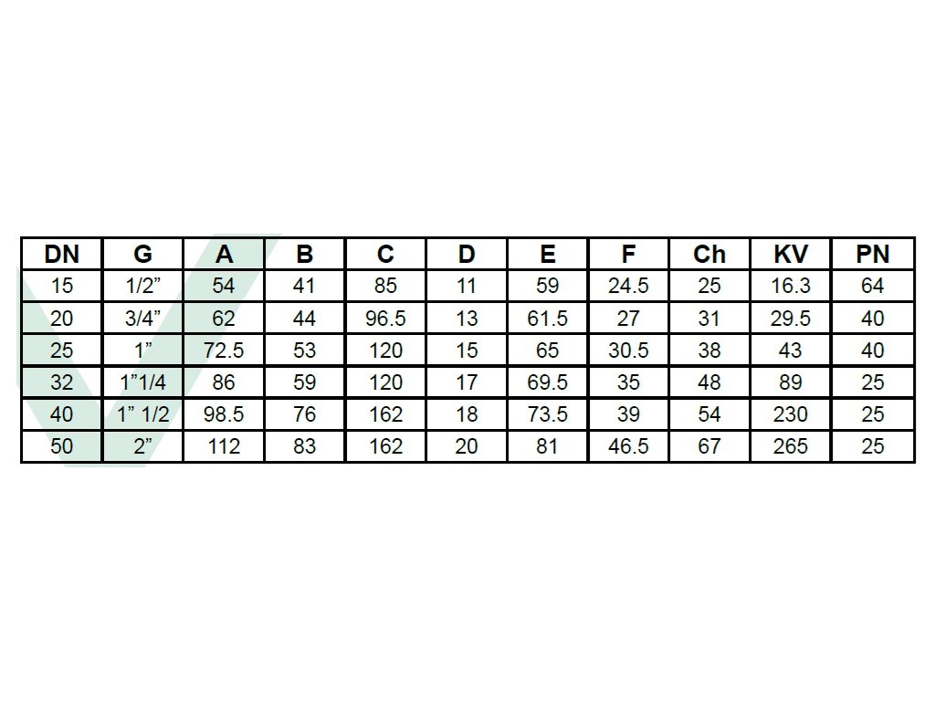• maximální pracovní tlak 25 bar pro DN 32 - DN 50