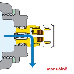 Ruční odvzdušnění Otočte bílým plastovým knoflíkem o cca 1 otáčku. Tento způsob odvzdušnění se používá např. při dopouštění (napouštění) topného systému.