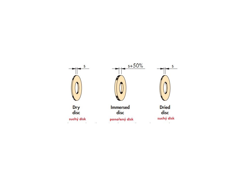 Hygroskopické disky po ponoření do vody zvětší svůj objem o 50 %.
