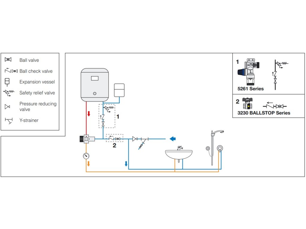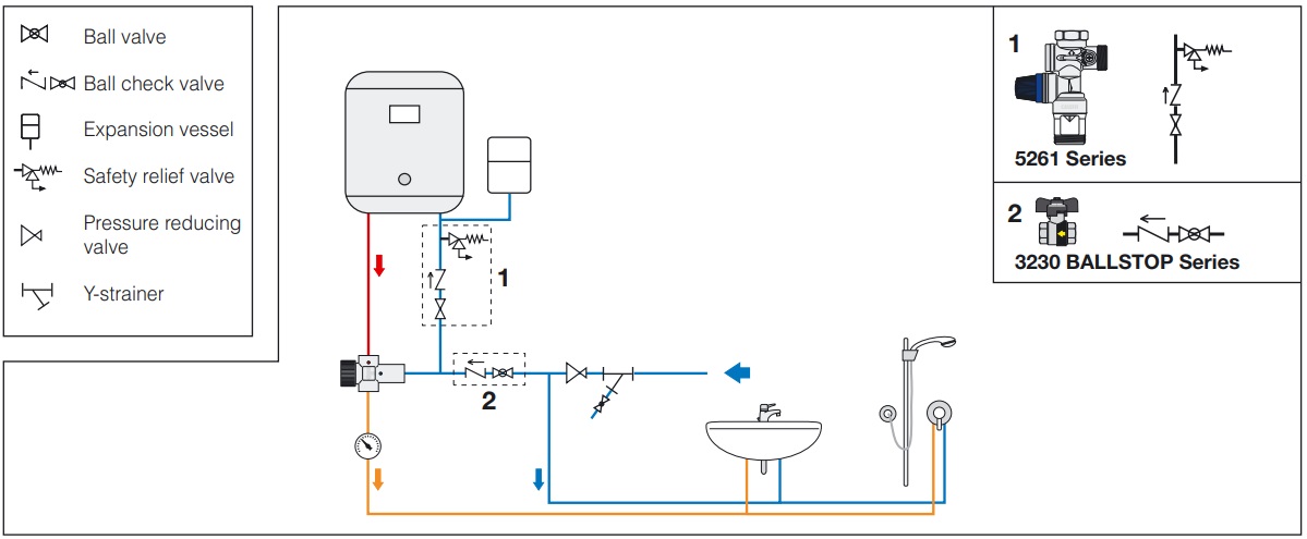 Směšovací ventily řady 520 se používají v systémech na teplou vodu se zásobníkovým ohřevem vody.