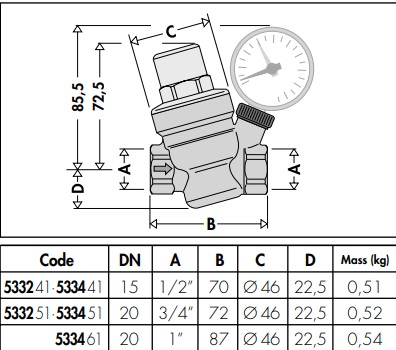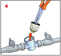 3 Nainstalujte redukční ventil do systému ve směru šipky vyražené na jeho těle (může být instalován vodorovně nebo svisle, ale NE obráceně)