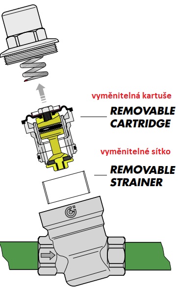 5 Po kontrole a čištění lze kartuši nasadit zpět do ventilu nebo alternativně lze vyměnit za novou