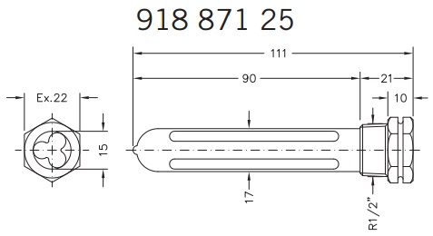 Používá se jako ochrana trnu teploměru pro měření teploty vody v systému.
