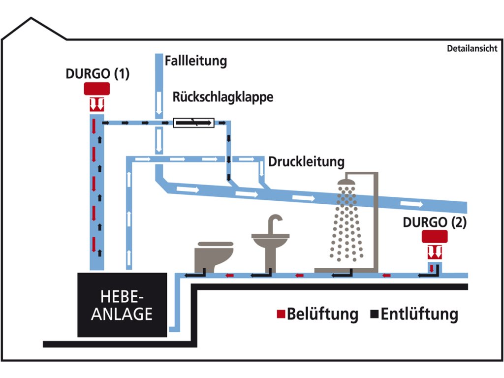DURGO interiérový přivzdušňovací ventil pro vertikální instalaci DN 40