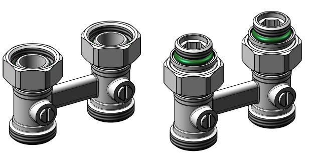 Na spojení trubky s radiátorovým uzavíracím ventilem použijte specifickou tvarovku a těsnící prvky. Potom utáhněte tvarovku a ventil nejlépe momentovým klíčem.