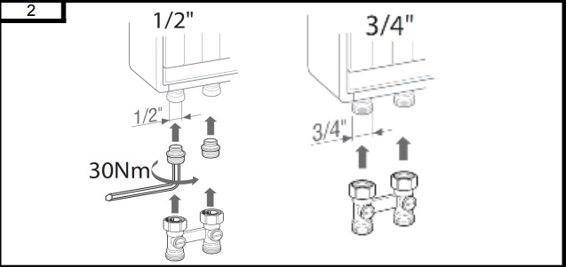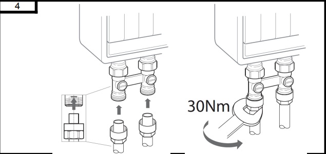 Utáhněte převlečné matice H-ventilu na připojení k radiátoru.