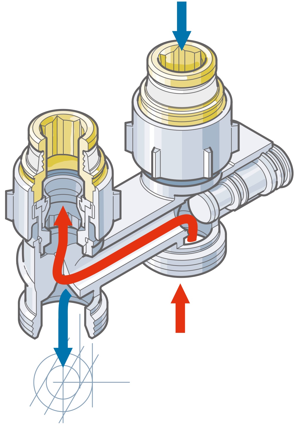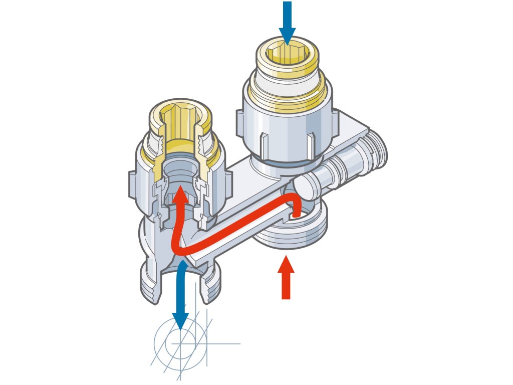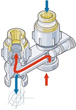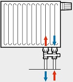 - pro správné dopojení topné a vratné vody k deskovému radiátoru se spodním připojením v případě záměny přívodu a zpátečky