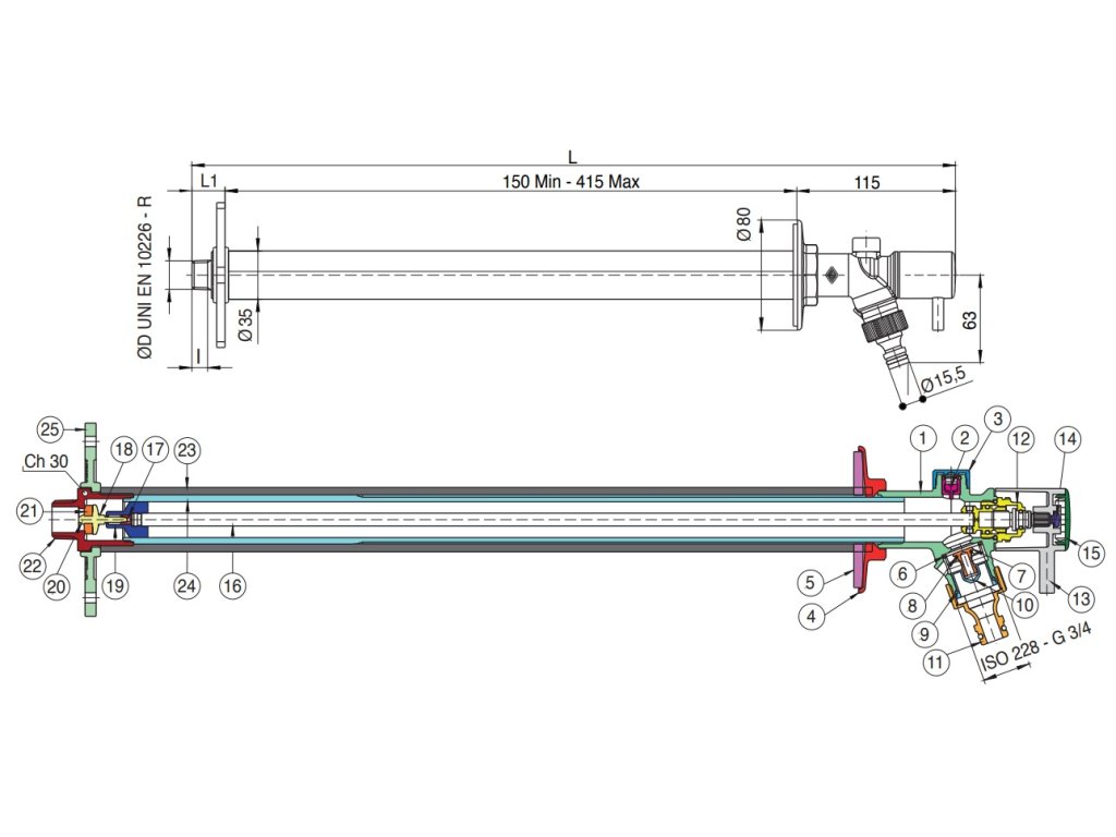 - max. tloušťka stěny L= 415 mm s možností montáže až 2 nástavců (položka 4860040000) pro stěny do L= 655 mm
