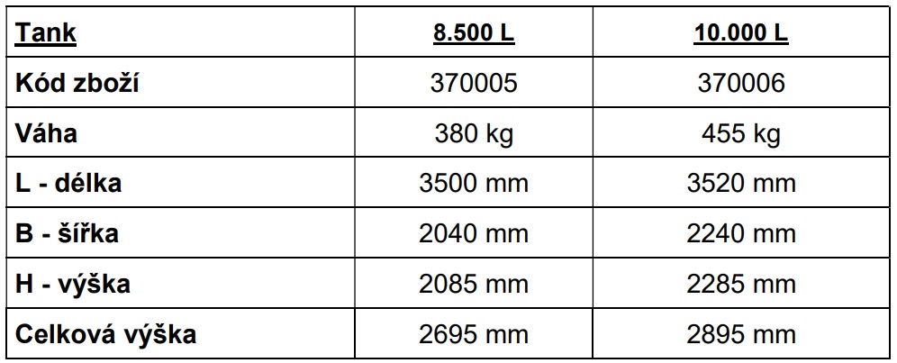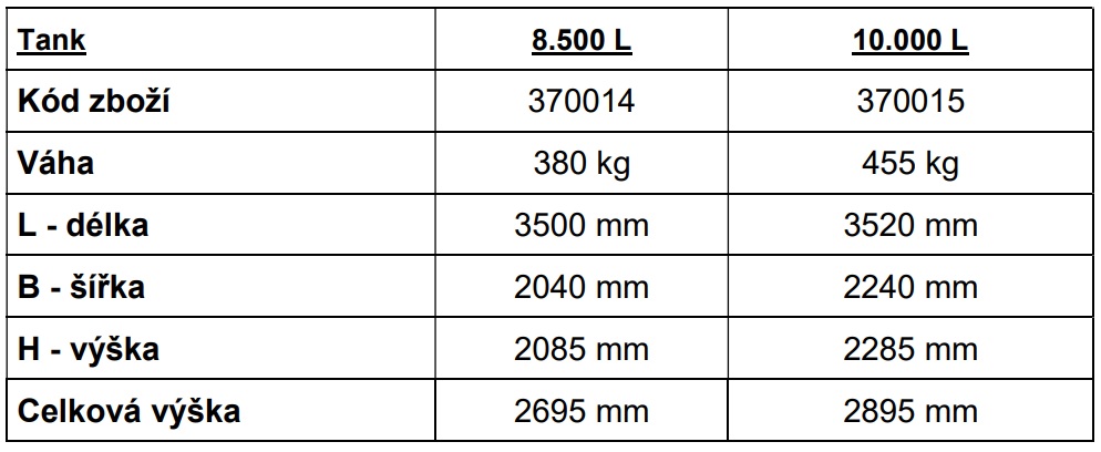 | Provedení: | bez dómu, bez poklopu, na dešťovou vodu, oválná, podzemní nádrž, podzemní nádrž XL, pochozí, pojezdová, samonosná |