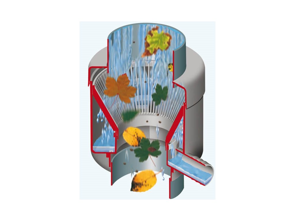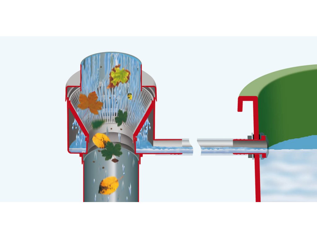 Filtr na dešťovou vodu do kulatého okapového svodu.