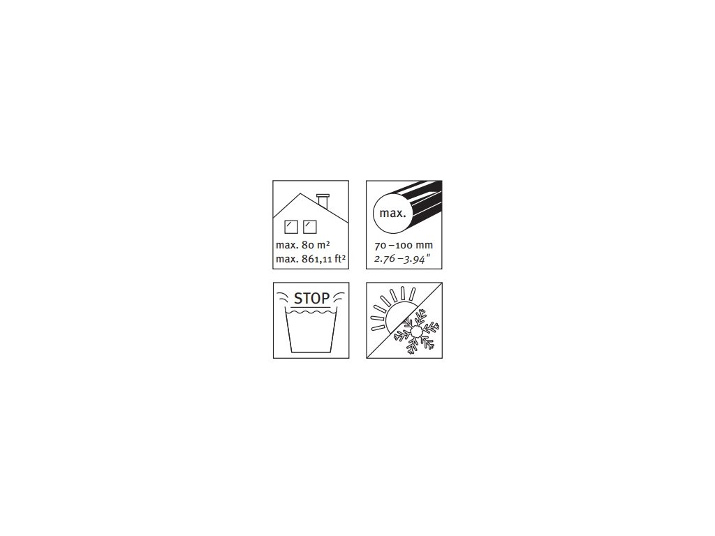 | Průměr okapového svodu: | 70 mm, 80 mm, 100 mm |