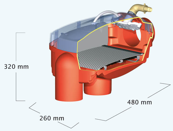 - přepadový sifon s ochranou proti vniknutí drobných zvířat