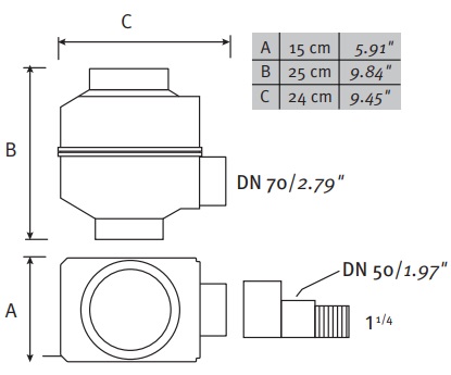 | Průměr okapového svodu: | 70 mm, 80 mm, 100 mm |