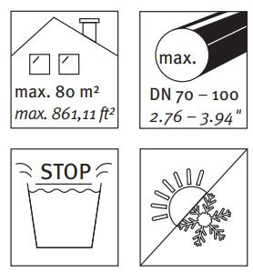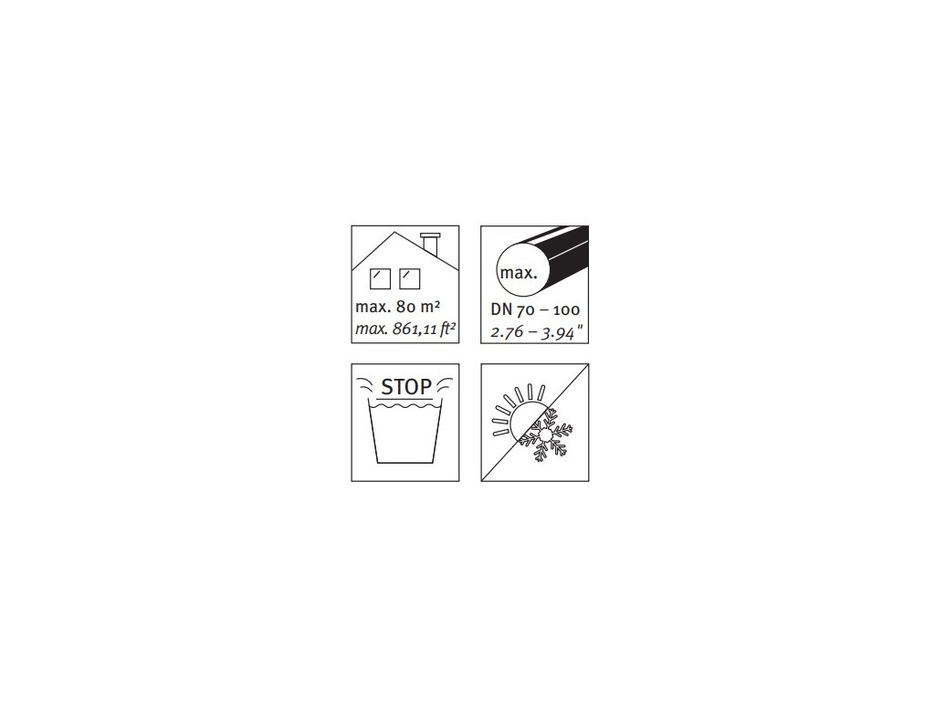 | Průměr okapového svodu: | 70 mm, 80 mm, 100 mm |