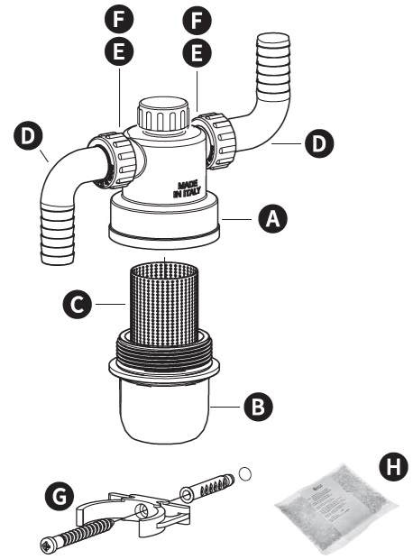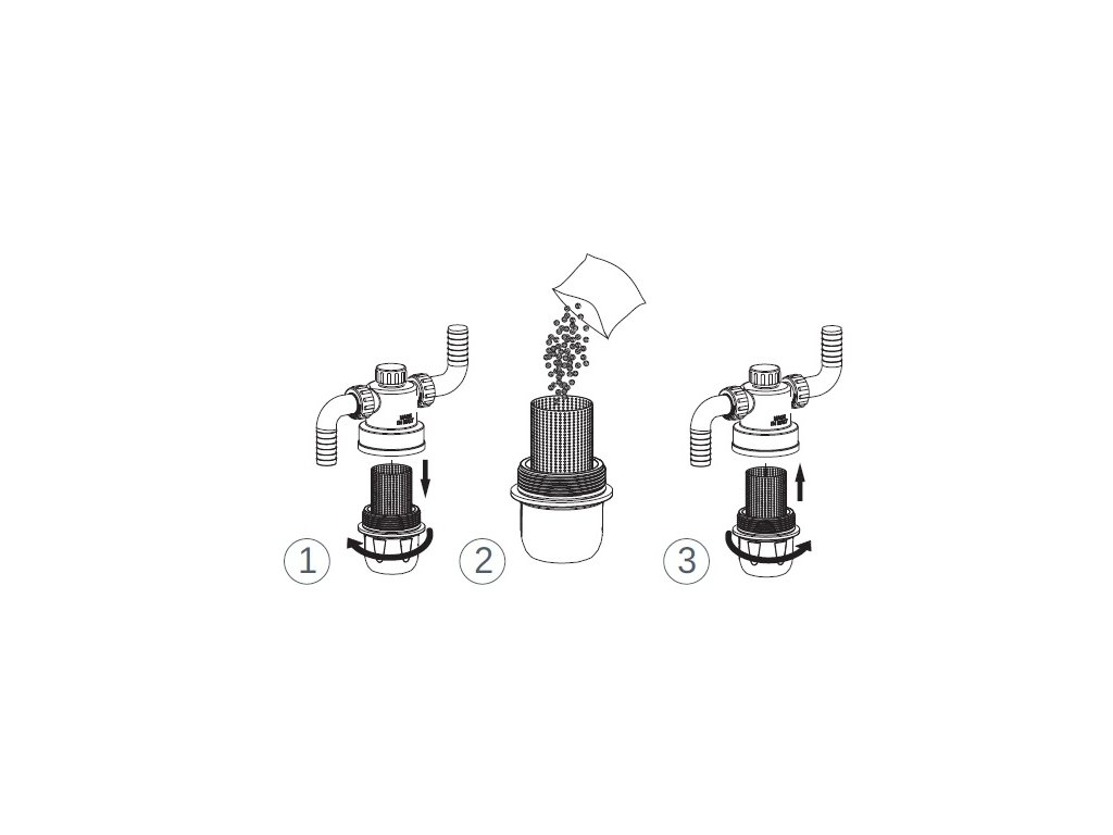 - odšroubujte průhlednou nádobku neutralizátoru a nasypte do nerezového filtru neutralizační náplň (součást balení)