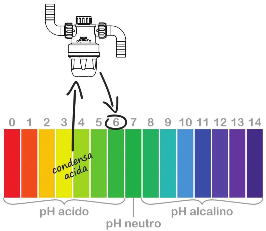 V případě plynových kondenzačních kotlů do 35 kW, potom nepřetržitý kontakt s kyselým kondenzátem může v průběhu let vážně poškodit kovové části podél vypouštěcího potrubí a samotné odpadní potrubí.