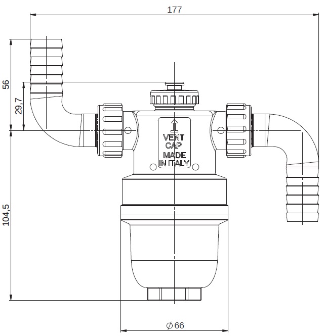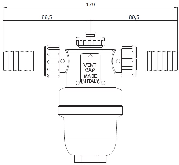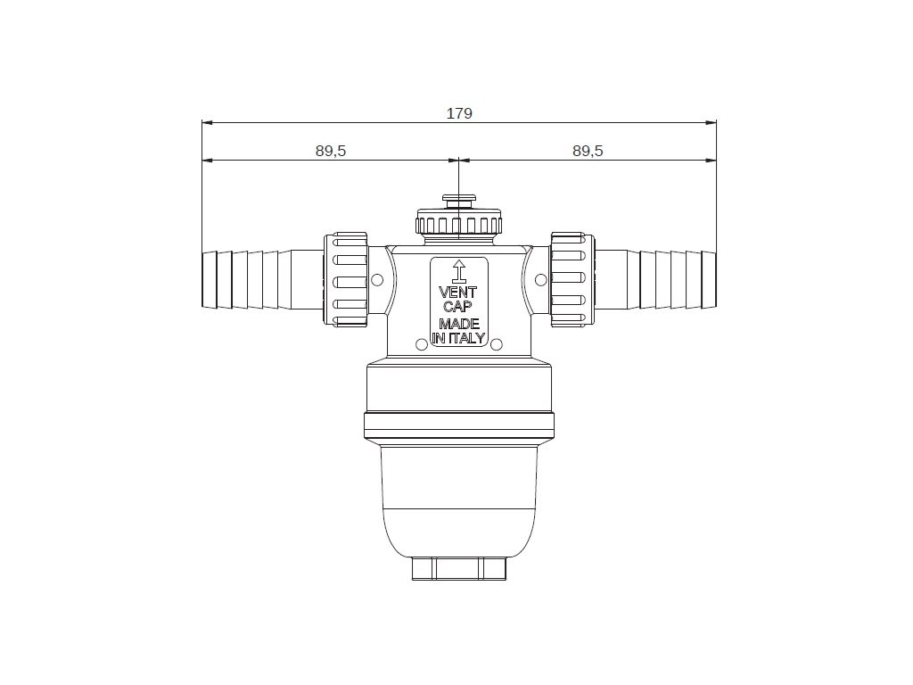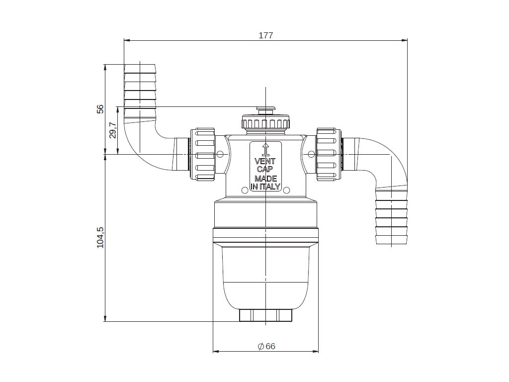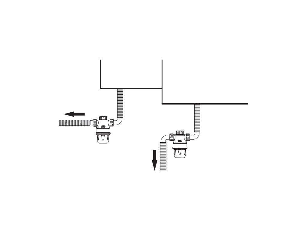 - pomocí dodaných těsnění našroubujte dvě hadicové přípojky (úhlová) na těleso neutralizátoru Acid X VENT. Hadicové přípojky jsou zaměnitelné (přímá)