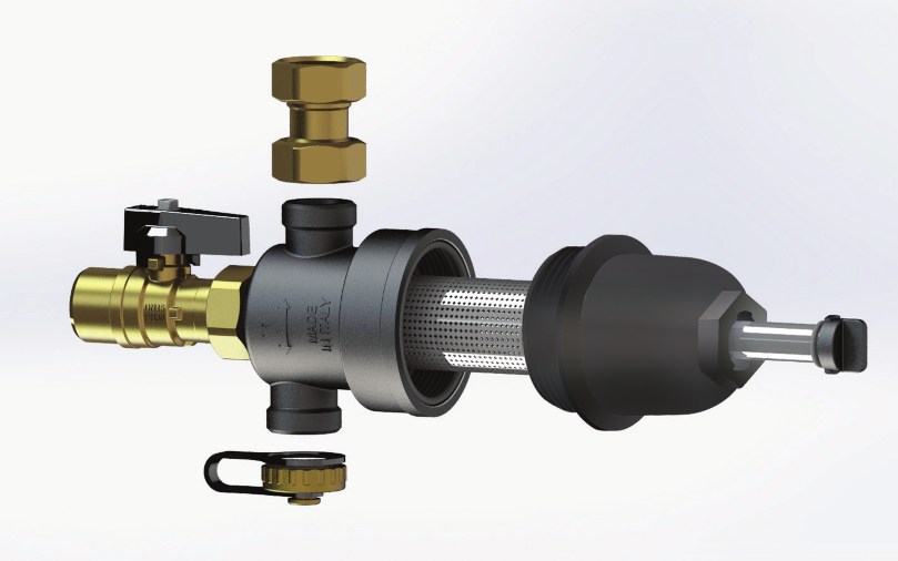 DirtOUT® COMPACT lze namontovat vodorovně a/nebo svisle díky speciálnímu tvaru T a speciálnímu designu. Filtr vždy umožňuje dokonalou filtraci v každé poloze připojení.