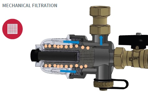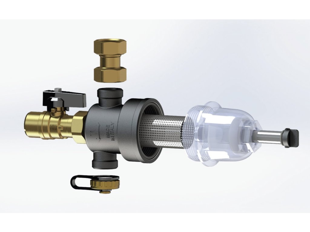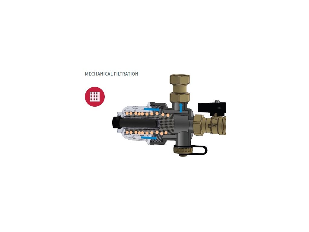 Multifunkční magnetický odlučovač nečistot pod plynový kotel. Připojení 3/4". Provozní teplota 0 °C +90 °C. Provozní tlak PN 3. Barva bílá, černá, transparentní. Polyamid PA66. Neodymový magnet 12 000 G. Filtrační síto nerez. Hustota filtračního síta 800 μm. Médium voda, voda + glykol (max. 50%). Pro rozvody vody a topení. Vyrobeno v souladu s UNI EN ISO 9001:2015 v Itálii.