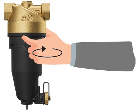 Pro kompletní kontrolu odlučovače nečistot nebo pro vyčištění či výměnu filtrační vložky je možné usazovací komoru zcela odšroubovat pomocí běžného klíče.