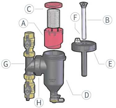 Sedimentační komora na nečistoty (neobsahuje filtrační vložku), umožňuje snížit frekvenci čištění (odvzdušňování) a zároveň udržuje filtrační vložku v její maximální účinnosti (nezanese se nečistotami).