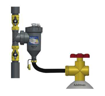 VSTUP PRO ADITIVA. Vypouštěcí ventil lze použít jako plnící bod pro chemické přísady do systému.