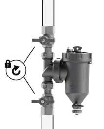 - uzavřete uzavírací ventily před a za filtrem