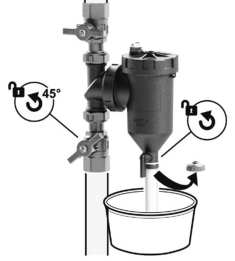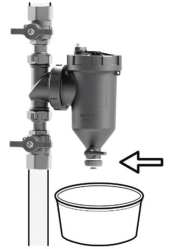 - mírně otevřete uzavírací ventil před zařízením, aby mohla voda téct a vypláchnout nečistoty z filtru