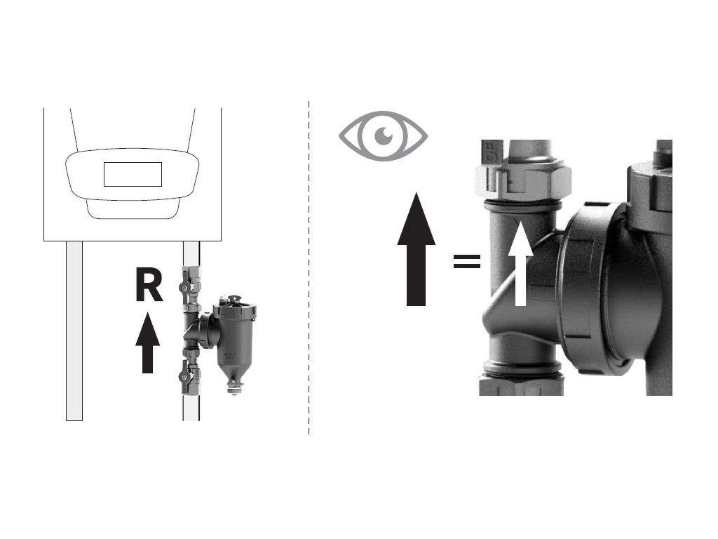 - filtr by měl být přednostně instalován na vratné potrubí tepelného zdroje